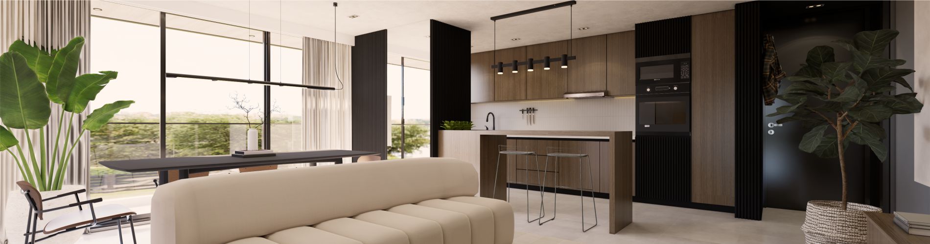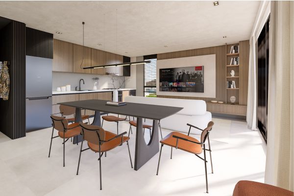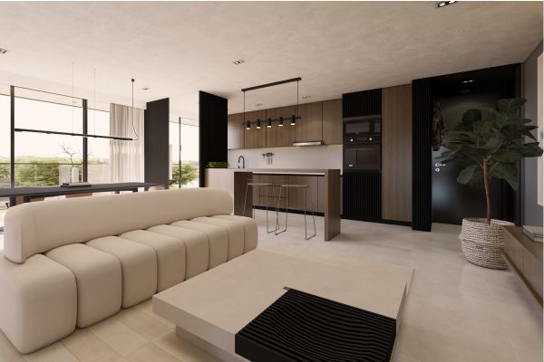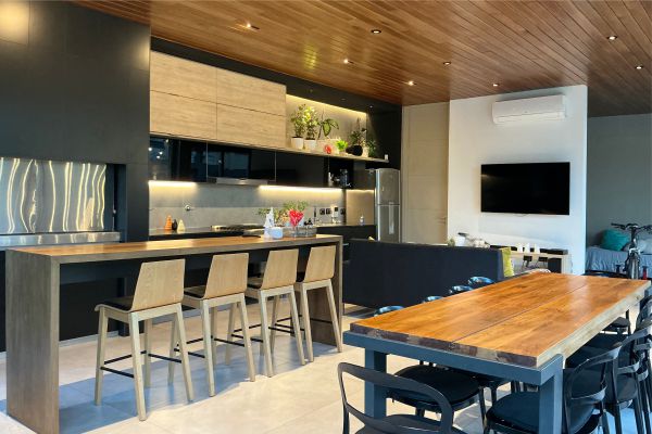 Cocina, comedor y estar se integran en un único espacio flexible, conectando visuales y
