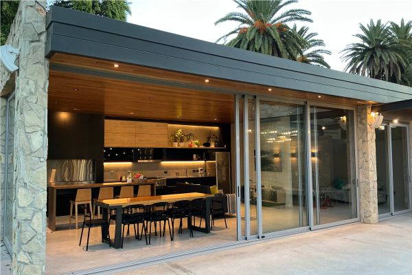 La transición entre interior y exterior es fluida, permitiendo que la casa se expanda en