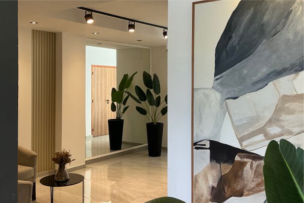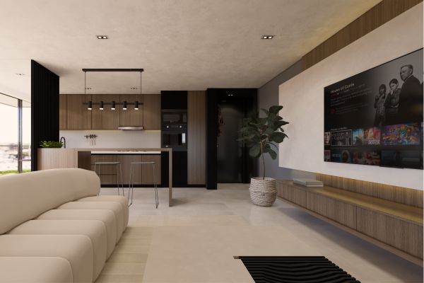 La escala es cálida, humana. Techos generosos aportan amplitud sin perder conexión.